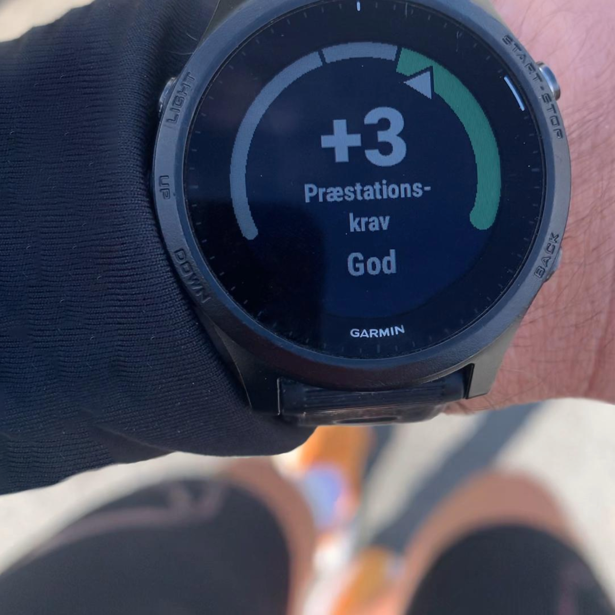 ved en gitt hastighet sammenlignet med hva du pleier, vil klokka gi deg en "+"-score. Det forteller deg at du i dag er i stand til å prestere bedre enn vanlig. Ytelseskrav måles på en skala fra -20 til +20. Hvert poeng står for ca. 1% av din VO2-Max verdi. Så hvis klokka sier at du ligger på +4, er det kanskje en god dag å sette litt ekstra fart på løpeturen, mens du kanskje bør ta det rolig hvis du har et ytelseskrav på -4.