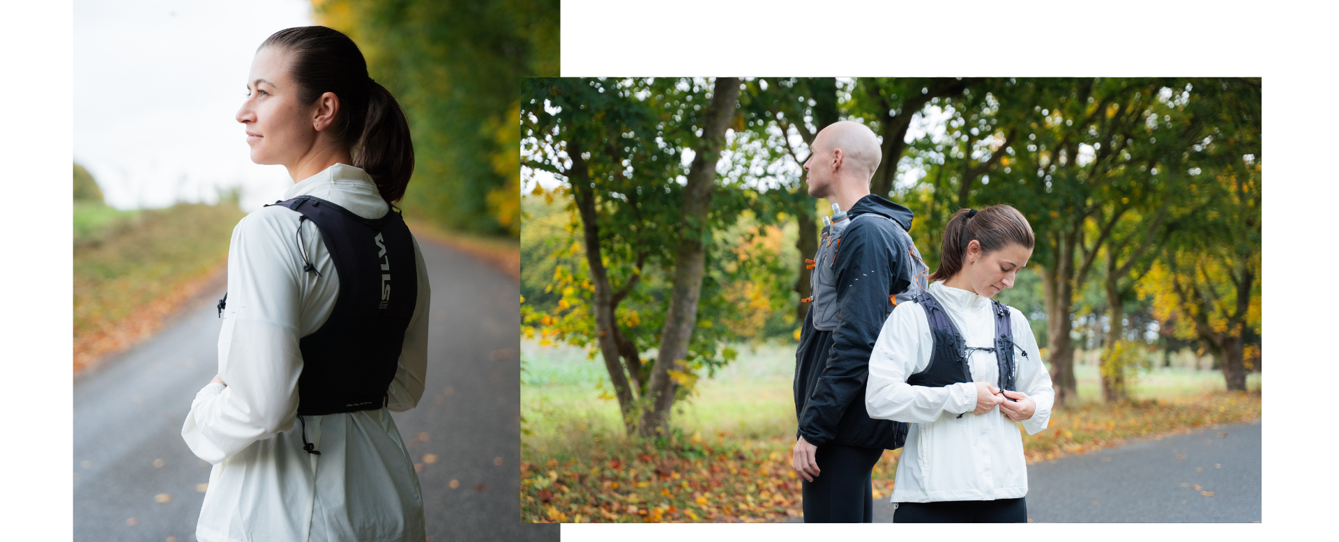 Løper du lange turer eller beveger deg på kuperte stier, er en væskevest ofte det beste valget. Den sitter tett på kroppen og fordeler vekten jevnt på overkroppen, så du kan ta med væske, energi og nødvendig utstyr uten å bli forstyrret under løp.