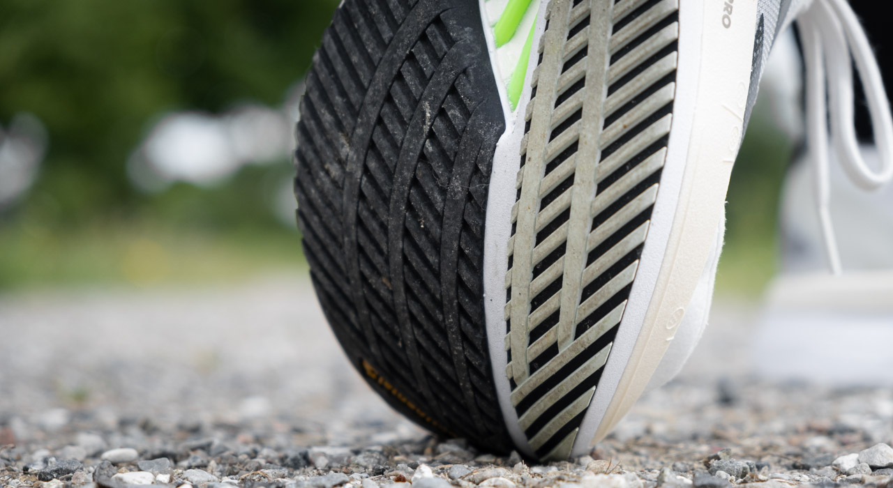 ADIDAS Adizero Boston 11 har den velkjente Continental-gummien på yttersålen. Det griper fast i alt. Det føles godt i svinger, og der er masse av det. Hvilket gir god mening, særlig etter at Boston har blitt til en sko som kan brukes som en mengdetreningssko.