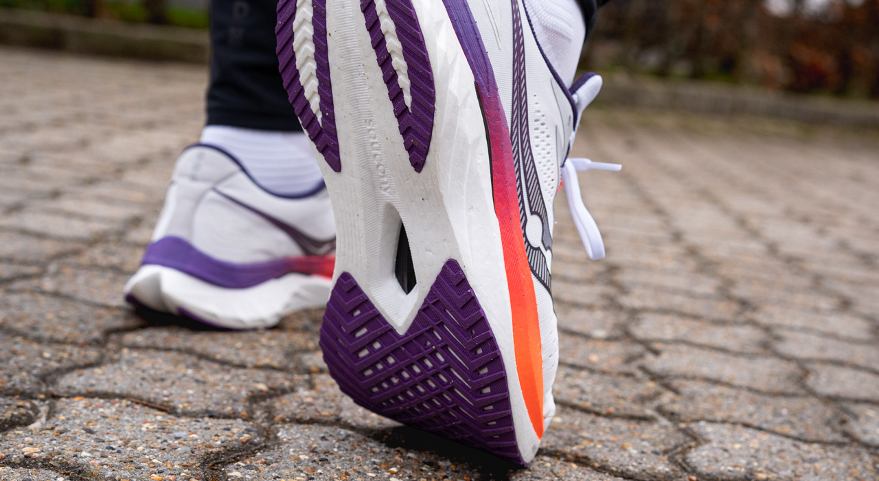 Til tross for dens lave vekt er mengden av yttersålgummi på Saucony Endorphin Speed 4 overraskende. Forfoten har spesielt omfattende dekning, og gummiet ser ut til å være litt mer klebrig i denne nye versjonen.