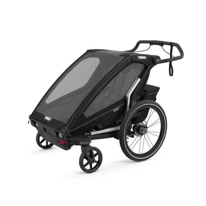 Vognen er fin å ha med på farten, da den kan brettes sammen, og kan skiftes fra sykkeltilhenger til gåvogn. Sikkerheten har blitt bedre i Thule Cariot Sport, da den har fått reflekser på hjul og kaleche, og en bremse på håndtaket, så du kan bremse gradvist når det f.eks går nedover.